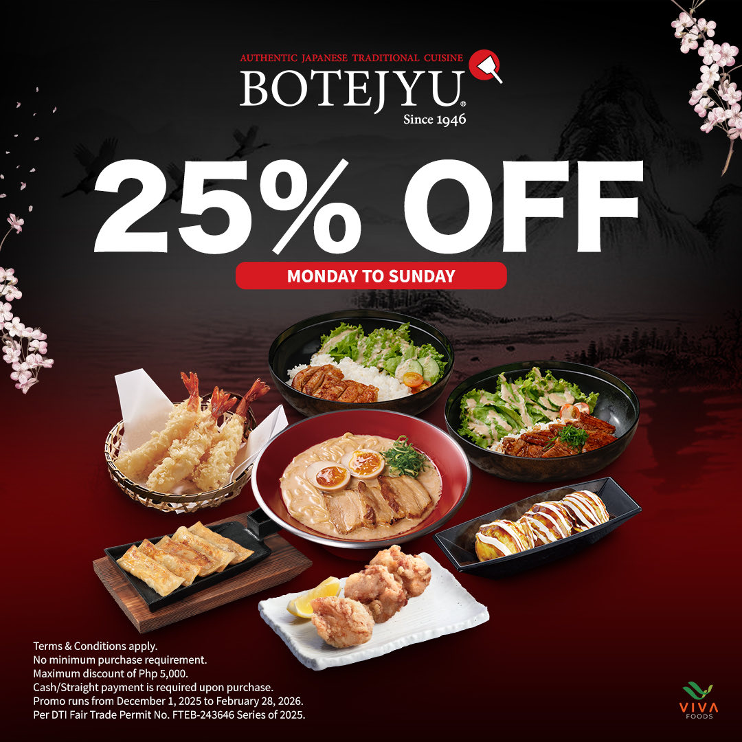 Promo is available at all Botejyu stores nationwide from August 1 to December 31, 2025, while supplies last. Don’t miss out!