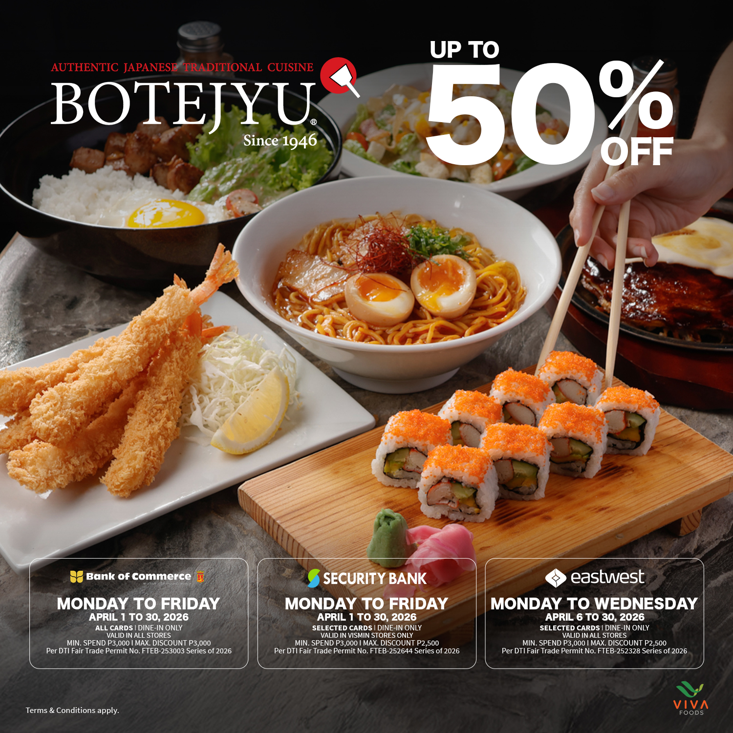 Kick off April with a feast of authentic Japanese cuisine and enjoy 50% OFF when you dine with us. 🍜💳